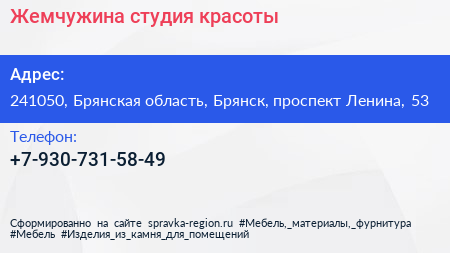 Жемчужина, студия красоты по адресу 241050, Брянская область, Брянск, проспект Ленина, 53 в дальнейшем Организация, размещена в следующих категориях:
