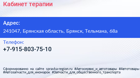 Кабинет терапии по адресу 241047, Брянская область, Брянск, Тельмана, 68а в дальнейшем Организация, размещена в следующих категориях: