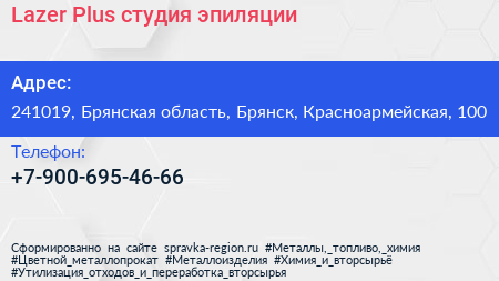 Lazer Plus, студия эпиляции по адресу 241019, Брянская область, Брянск, Красноармейская, 100 в дальнейшем Организация, размещена в следующих категориях: