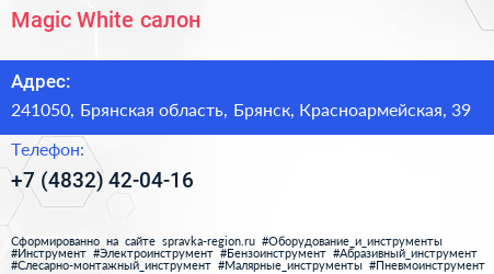 Magic White, салон по адресу 241050, Брянская область, Брянск, Красноармейская, 39 в дальнейшем Организация, размещена в следующих категориях: