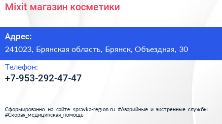Mixit, магазин косметики по адресу 241023, Брянская область, Брянск, Объездная, 30 в дальнейшем Организация, размещена в следующих категориях: