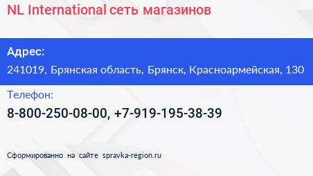 NL International, сеть магазинов по адресу 241019, Брянская область, Брянск, Красноармейская, 130 в дальнейшем Организация, размещена в следующих категориях: