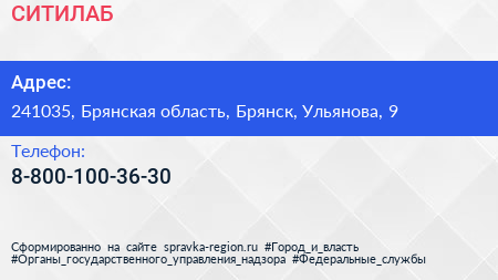 СИТИЛАБ по адресу 241035, Брянская область, Брянск, Ульянова, 9 в дальнейшем Организация, размещена в следующих категориях: