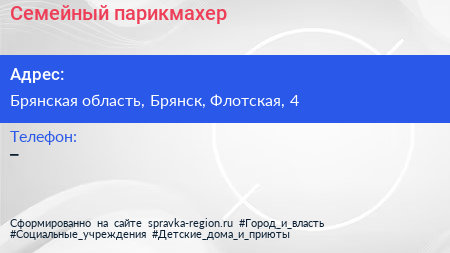 Семейный парикмахер по адресу Брянская область, Брянск, Флотская, 4 в дальнейшем Организация, размещена в следующих категориях: