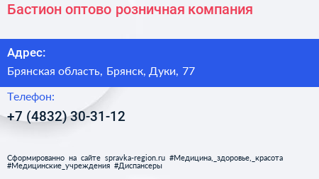 Бастион, оптово-розничная компания по адресу Брянская область, Брянск, Дуки, 77 в дальнейшем Организация, размещена в следующих категориях: