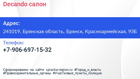 Decando, салон по адресу 241019, Брянская область, Брянск, Красноармейская, 93Б в дальнейшем Организация, размещена в следующих категориях: