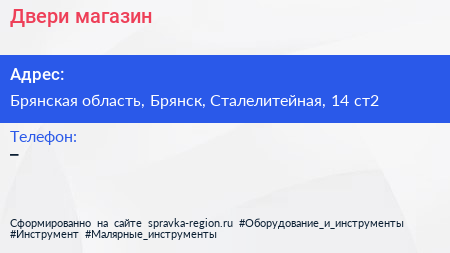Адрес: Брянская область, Брянск, Сталелитейная, 14