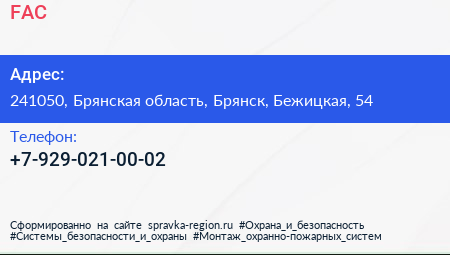 FAC по адресу 241050, Брянская область, Брянск, Бежицкая, 54 в дальнейшем Организация, размещена в следующих категориях: