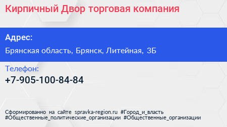 Кирпичный Двор, торговая компания по адресу Брянская область, Брянск, Литейная, 3Б в дальнейшем Организация, размещена в следующих категориях: