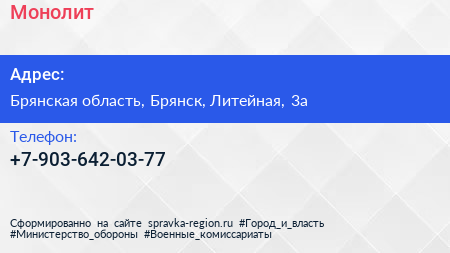 Монолит по адресу Брянская область, Брянск, Литейная, 3а в дальнейшем Организация, размещена в следующих категориях: