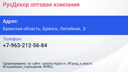РусДекор, оптовая компания по адресу Брянская область, Брянск, Литейная, 3 в дальнейшем Организация, размещена в следующих категориях: