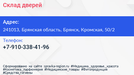 Склад дверей по адресу 241013, Брянская область, Брянск, Кромская, 50/2 в дальнейшем Организация, размещена в следующих категориях: