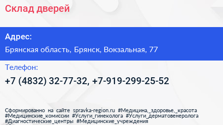 Склад дверей по адресу Брянская область, Брянск, Вокзальная, 77 в дальнейшем Организация, размещена в следующих категориях: