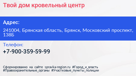 Твой дом, кровельный центр по адресу 241004, Брянская область, Брянск, Московский проспект, 138Б в дальнейшем Организация, размещена в следующих категориях: