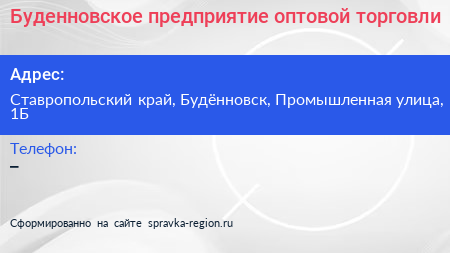 Буденновское предприятие оптовой торговли по адресу Ставропольский край, Будённовск, Промышленная улица, 1Б в дальнейшем Организация, размещена в следующих категориях: