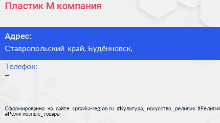 Пластик-М, компания по адресу Ставропольский край, Будённовск, в дальнейшем Организация, размещена в следующих категориях: