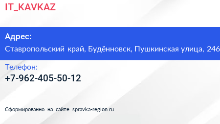 IT_KAVKAZ по адресу Ставропольский край, Будённовск, Пушкинская улица, 246 в дальнейшем Организация, размещена в следующих категориях: