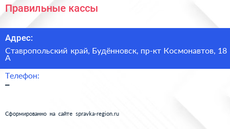 Правильные кассы по адресу Ставропольский край, Будённовск, пр-кт Космонавтов, 18 А в дальнейшем Организация, размещена в следующих категориях: