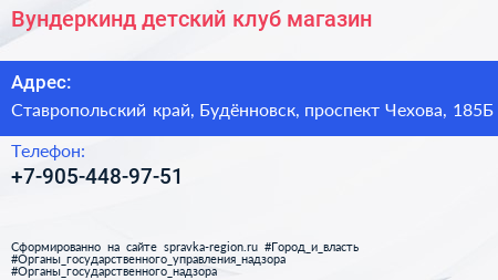 Вундеркинд, детский клуб-магазин по адресу Ставропольский край, Будённовск, проспект Чехова, 185Б в дальнейшем Организация, размещена в следующих категориях: