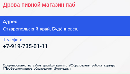 Дрова, пивной магазин-паб по адресу Ставропольский край, Будённовск, в дальнейшем Организация, размещена в следующих категориях: