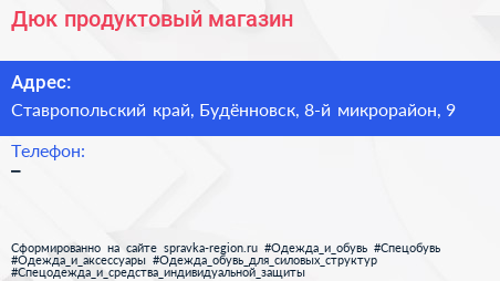 Дюк, продуктовый магазин по адресу Ставропольский край, Будённовск, 8-й микрорайон, 9 в дальнейшем Организация, размещена в следующих категориях: