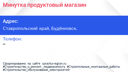 Минутка, продуктовый магазин по адресу Ставропольский край, Будённовск, в дальнейшем Организация, размещена в следующих категориях: