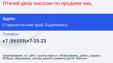 Птичий двор, магазин по продаже яиц по адресу Ставропольский край, Будённовск, в дальнейшем Организация, размещена в следующих категориях: