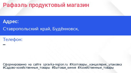 Рафаэль, продуктовый магазин по адресу Ставропольский край, Будённовск, в дальнейшем Организация, размещена в следующих категориях: