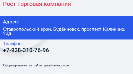 Рост, торговая компания по адресу Ставропольский край, Будённовск, проспект Калинина, 92д в дальнейшем Организация, размещена в следующих категориях: