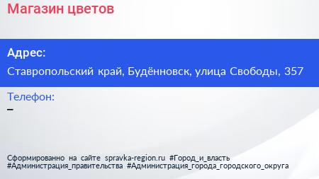 Магазин цветов по адресу Ставропольский край, Будённовск, улица Свободы, 357 в дальнейшем Организация, размещена в следующих категориях: