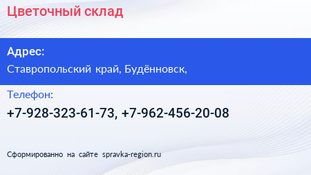 Цветочный склад по адресу Ставропольский край, Будённовск, в дальнейшем Организация, размещена в следующих категориях: