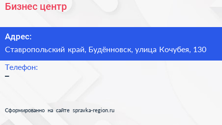 Бизнес центр по адресу Ставропольский край, Будённовск, улица Кочубея, 130 в дальнейшем Организация, размещена в следующих категориях:
