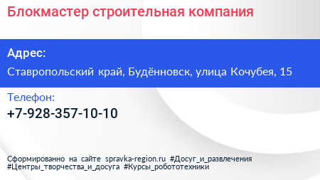 Блокмастер, строительная компания по адресу Ставропольский край, Будённовск, улица Кочубея, 15 в дальнейшем Организация, размещена в следующих категориях: