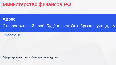 Министерство финансов РФ по адресу Ставропольский край, Будённовск, Октябрьская улица, 46 в дальнейшем Организация, размещена в следующих категориях:
