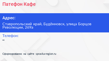 Патефон, Кафе по адресу Ставропольский край, Будённовск, улица Борцов Революции, 269а в дальнейшем Организация, размещена в следующих категориях: