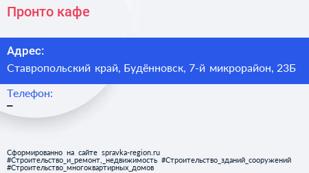 Пронто, кафе по адресу Ставропольский край, Будённовск, 7-й микрорайон, 23Б в дальнейшем Организация, размещена в следующих категориях: