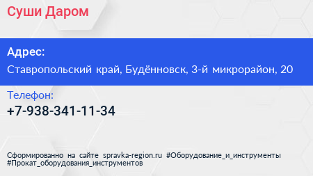 Суши Даром по адресу Ставропольский край, Будённовск, 3-й микрорайон, 20 в дальнейшем Организация, размещена в следующих категориях:
