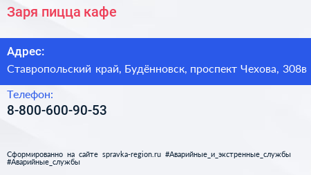 Заря-пицца, кафе по адресу Ставропольский край, Будённовск, проспект Чехова, 308в в дальнейшем Организация, размещена в следующих категориях: