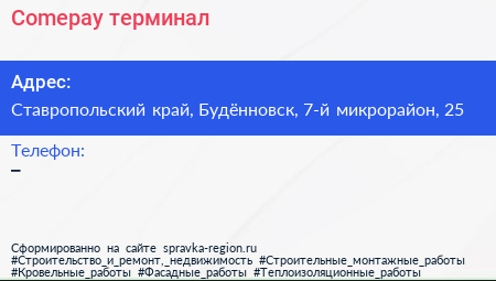 Comepay, терминал по адресу Ставропольский край, Будённовск, 7-й микрорайон, 25 в дальнейшем Организация, размещена в следующих категориях: