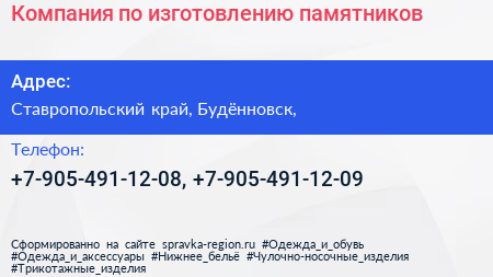 Компания по изготовлению памятников по адресу Ставропольский край, Будённовск, в дальнейшем Организация, размещена в следующих категориях: