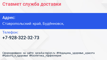 Ставмет, служба доставки по адресу Ставропольский край, Будённовск, в дальнейшем Организация, размещена в следующих категориях: