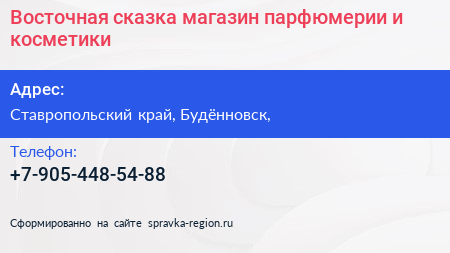 Восточная сказка, магазин парфюмерии и косметики по адресу Ставропольский край, Будённовск, в дальнейшем Организация, размещена в следующих категориях: