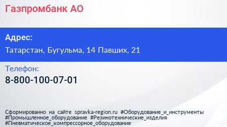 Газпромбанк, АО по адресу Татарстан, Бугульма, 14 Павших, 21 в дальнейшем Организация, размещена в следующих категориях: