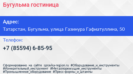 Бугульма, гостиница по адресу Татарстан, Бугульма, улица Газинура Гафиатуллина, 50 в дальнейшем Организация, размещена в следующих категориях: