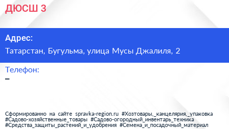 ДЮСШ №3 по адресу Татарстан, Бугульма, улица Мусы Джалиля, 2 в дальнейшем Организация, размещена в следующих категориях: