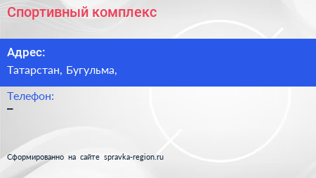 Спортивный комплекс по адресу Татарстан, Бугульма, в дальнейшем Организация, размещена в следующих категориях: