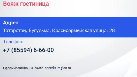 Вояж, гостиница по адресу Татарстан, Бугульма, Красноармейская улица, 28 в дальнейшем Организация, размещена в следующих категориях: