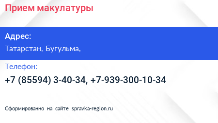Прием макулатуры по адресу Татарстан, Бугульма, в дальнейшем Организация, размещена в следующих категориях: