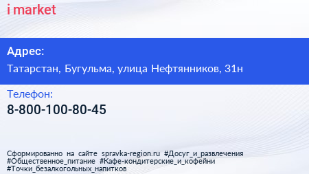 i-market по адресу Татарстан, Бугульма, улица Нефтянников, 31н в дальнейшем Организация, размещена в следующих категориях: