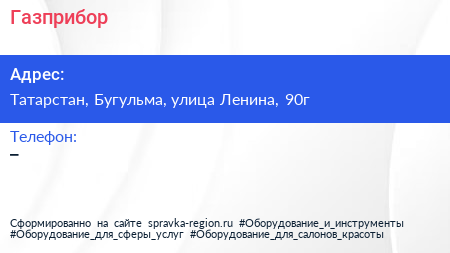 Газприбор по адресу Татарстан, Бугульма, улица Ленина, 90г в дальнейшем Организация, размещена в следующих категориях: